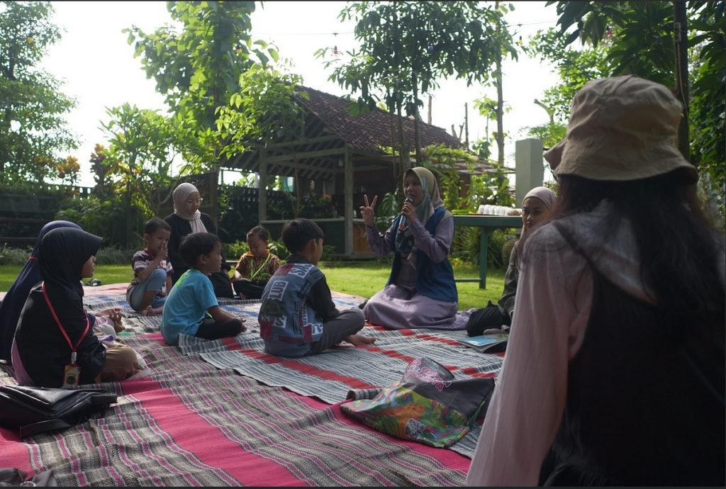 Pada sesi read aloud, anak-anak tidak diposisikan sebagai pendengar pasif. Mereka diajak menyelami cerita, memahami perasaan tokoh, dan menanggapi alur dengan cara mereka sendiri. Beberapa anak spontan menjawab pertanyaan, sebagian lain mengangguk pelan atau tersenyum ketika cerita menyentuh emosi mereka. Dari momen-momen kecil ini, saya melihat bagaimana literasi yang hidup mampu menumbuhkan empati dan kepekaan rasa. Membaca tidak lagi berhenti pada pengenalan huruf dan kata, tetapi menjadi pintu masuk untuk membangun kesadaran, sikap, dan cara memandang dunia.